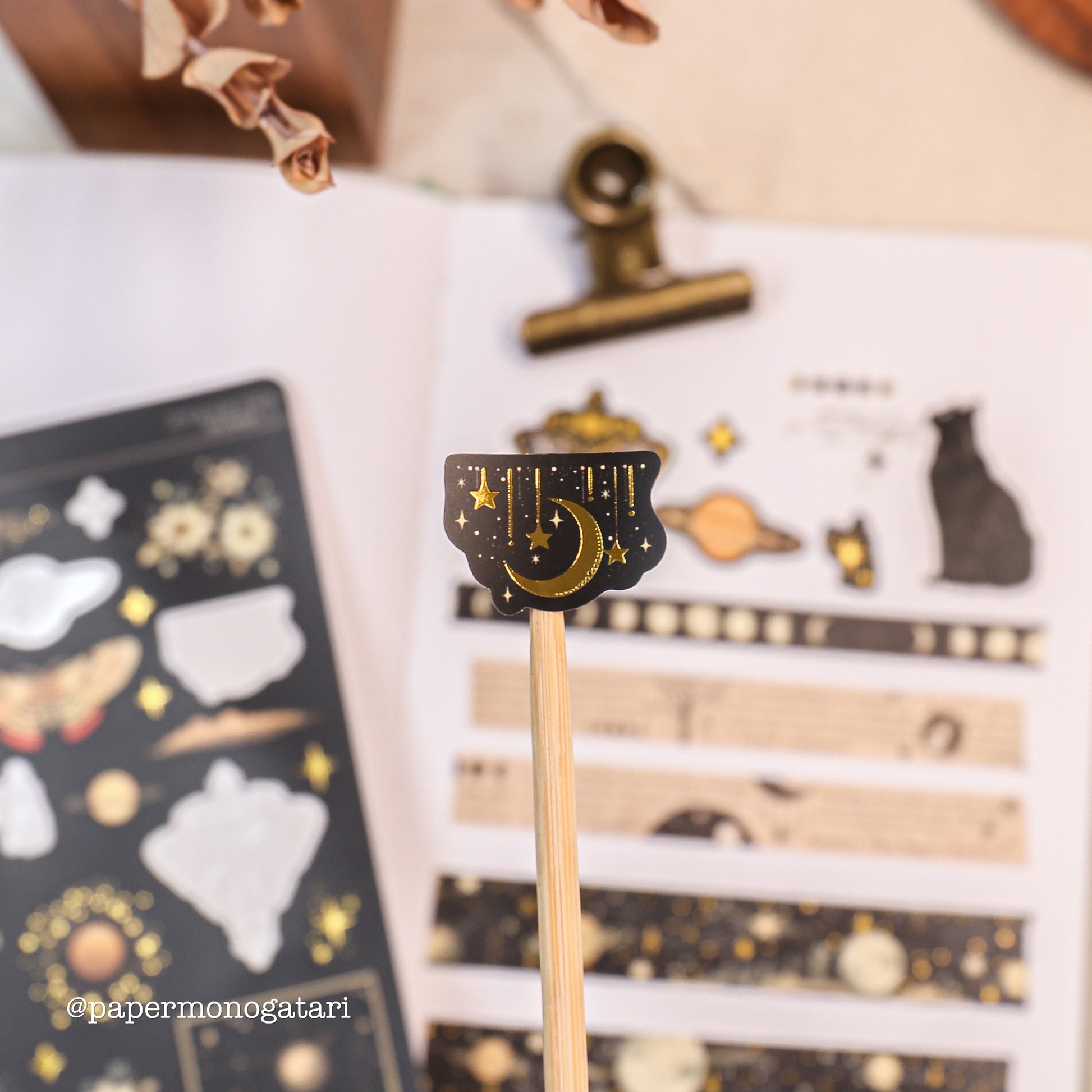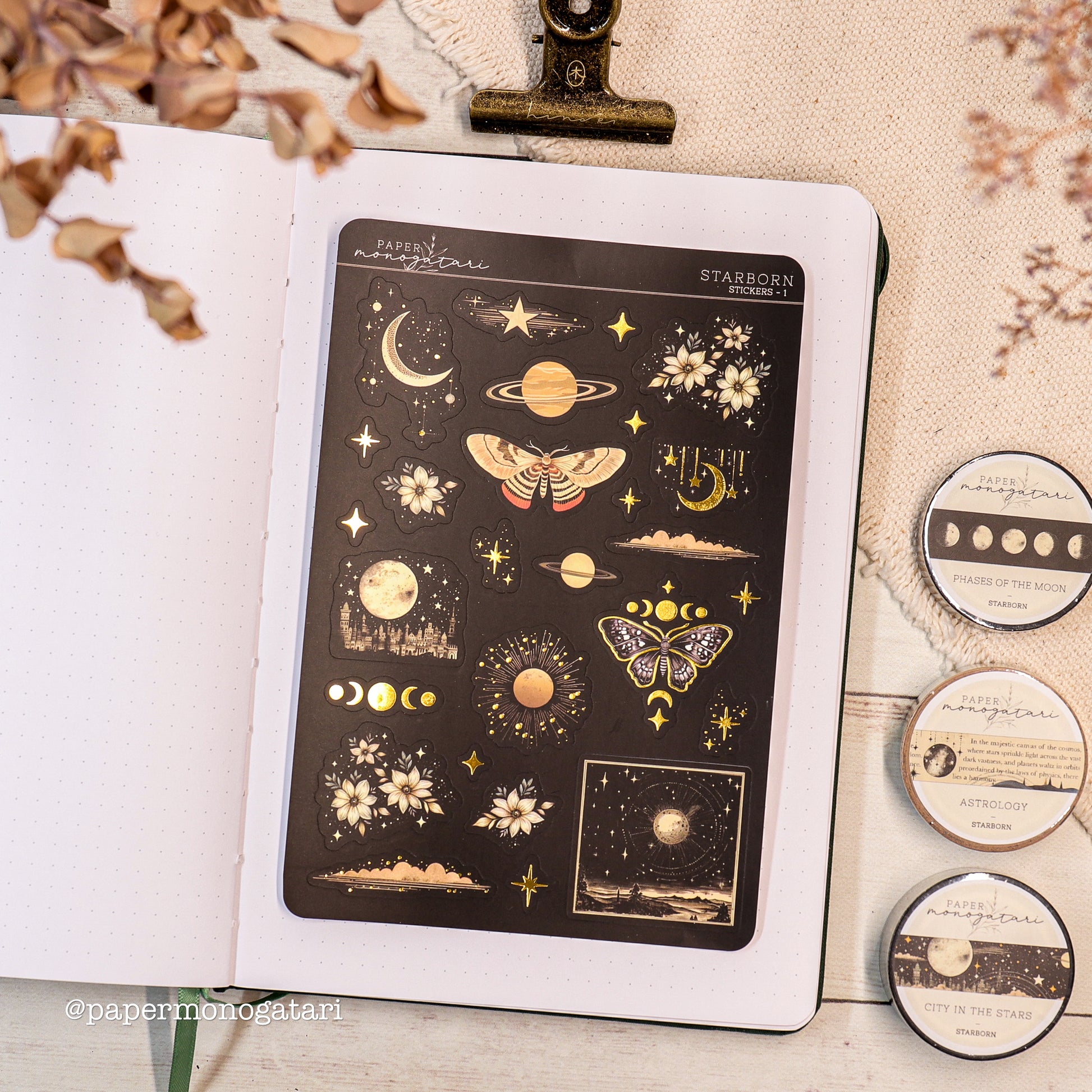 Starborn- collection contains an unlimited selection of celestial-themed products with a dark color theme and vintage touch. They are a great addition to any journaling or decoration collection! The Starborn- collection is slowly growing with other launches.